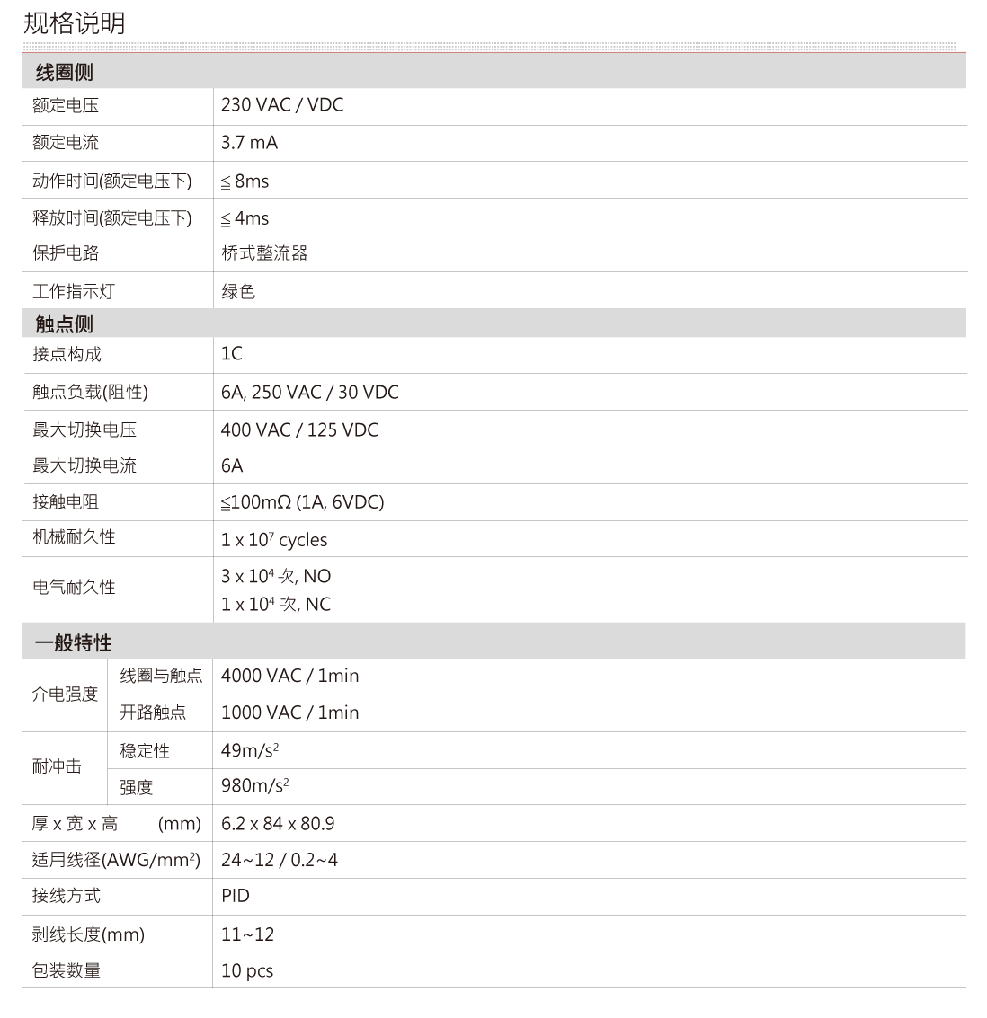 产品规格