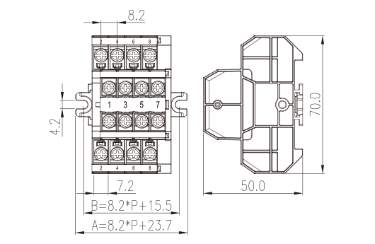 - Panel Mounting Bi-level, Stud Connection, Pitch:8.2mm, M3.5, 600V, 20/30A